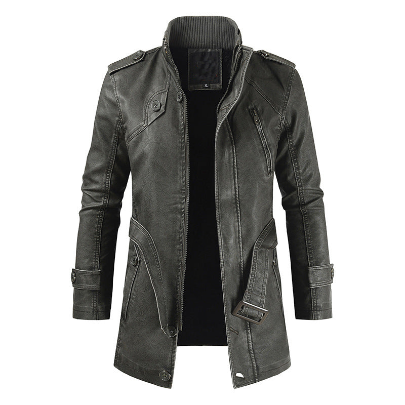 Ce manteau long en simili-cuir allie élégance et confort pour la saison automne-hiver.